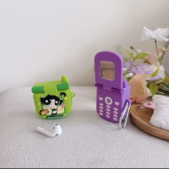 Una funda para AirPods 3 que lo tiene todo: diseño flip celular retro, espejo funcional, llavero y la ternura de Burbuja de las Chicas Superpoderosas. Hecha para proteger con estilo y destacar en tu día a día.