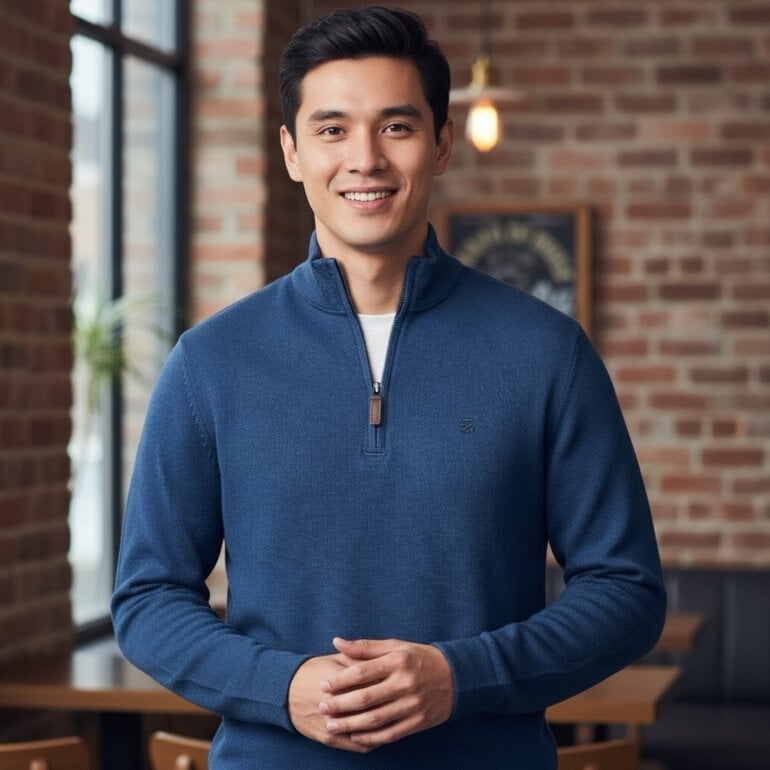 Este suéter Izod talla chica en azul marino es la elección perfecta para hombres que desean proyectar un estilo cuidado y elegante en cualquier ocasión. Con media cremallera y cuello alto, su diseño minimalista se adapta fácilmente a diferentes estilos, ya sea con jeans para un look casual o con pantalones de vestir para un outfit semiformal.